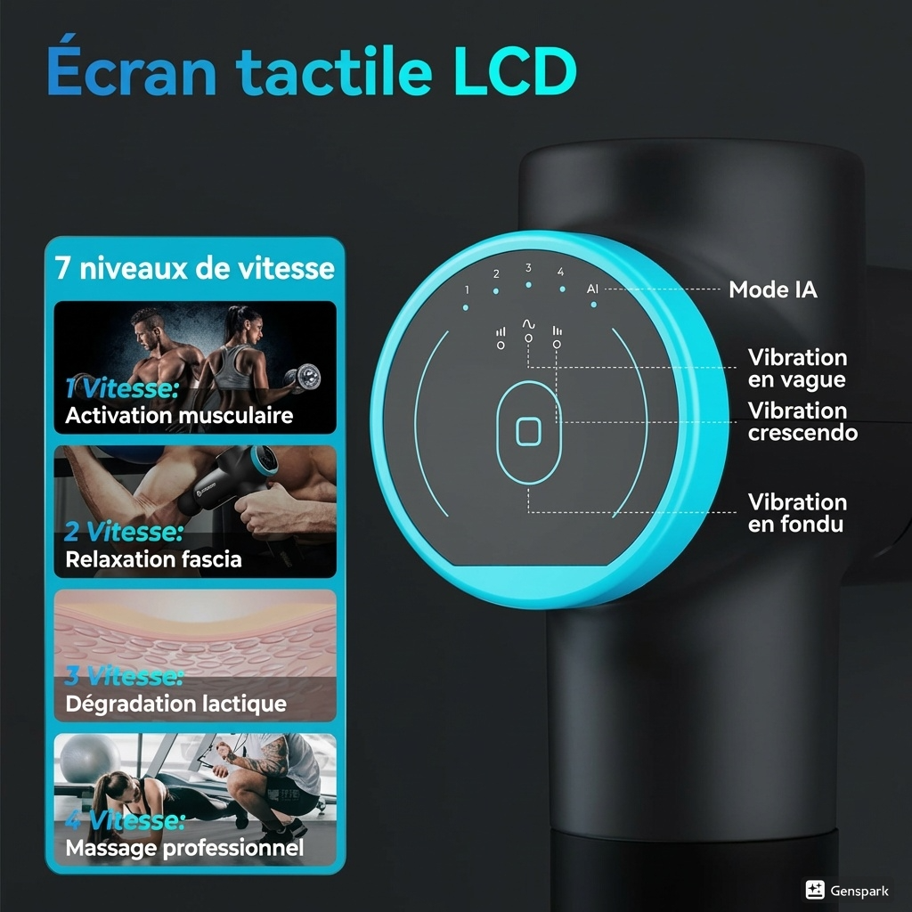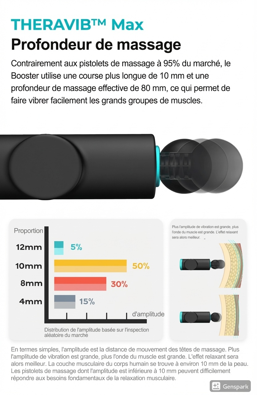 Grâce à ses 30 niveaux d'intensité et 8 têtes, ciblez chaque muscle pour éliminer les courbatures en profondeur.
